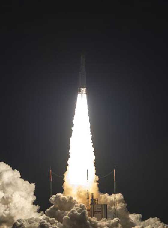 Die Trägerrakete Ariane 5 ist das Aushängeschild für europäisches Know-how und zählt zu den größten und ehrgeizigsten Raumfahrtprogrammen der Welt. Nun hat sie einmal mehr ihre Flexibilität unter Beweis gestellt: Sie ermöglicht den Transport von schweren Nutzlasten in den niedrigen Erdorbit, von mehreren Satelliten in den mittleren Orbit oder – wie beim heutigen Start – von zwei Satelliten mit optimierter Betriebsdauer in den geostationären Transferorbit.