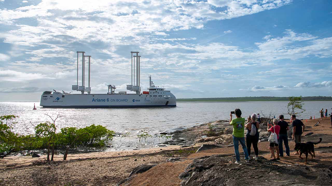 Le navire Canopée, destiné au transport d’Ariane 6, a accosté au port de Pariacabo en Guyane, le 3 novembre 2023. Lors de cette première traversée transatlantique avec ses voiles, il transportait à son bord des éléments de la partie haute du lanceur Ariane 6, dont la coiffe, ainsi que des éléments constitutifs des boosters. Ces éléments, destinés au vol inaugural, ont été déchargés puis réceptionnés au Centre Spatial Guyanais.