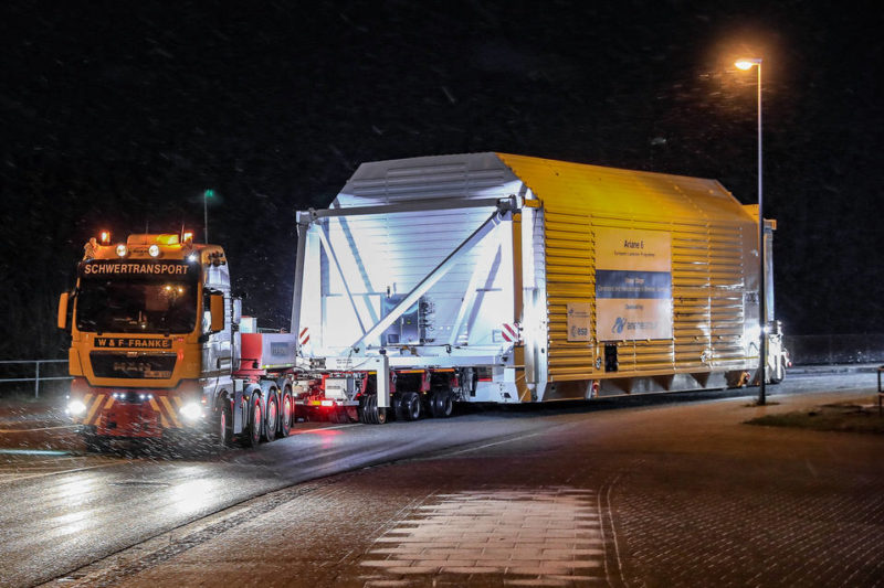 Fermeture des portes ! Elles ne seront réouvertes qu’après un parcours en bateau et puis en camion pour rejoindre le site de l’agence spatiale allemande (DLR) à Lampoldshausen au sud de l’Allemagne à presque 400km de là.