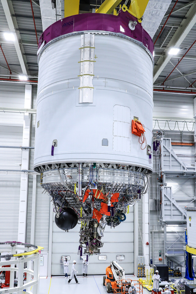 Il y a quelques jours de cela, les équipes d’ArianeGroup à Brême en Allemagne très attentives aux procédés de préparation au déplacement de l’étage supérieur.