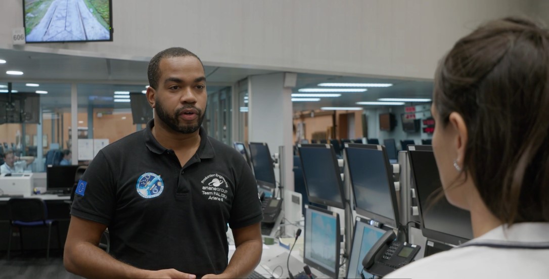 In Teil 4 unserer Videotour mit Hintergrundinfos zu den Startvorbereitungen der Ariane 6 begeben wir uns in Begleitung der Rocket Makers Martin, Nicolas und Joël in den Kontrollraum des Startzentrums. Der Raketenstart rückt immer näher. Wir erfahren im Detail wie die auf der Startrampe positionierte, zum Abflug bereite und mit dem Prüfstand verbundene Trägerrakete einer letzten Kontrolle unterzogen wird.