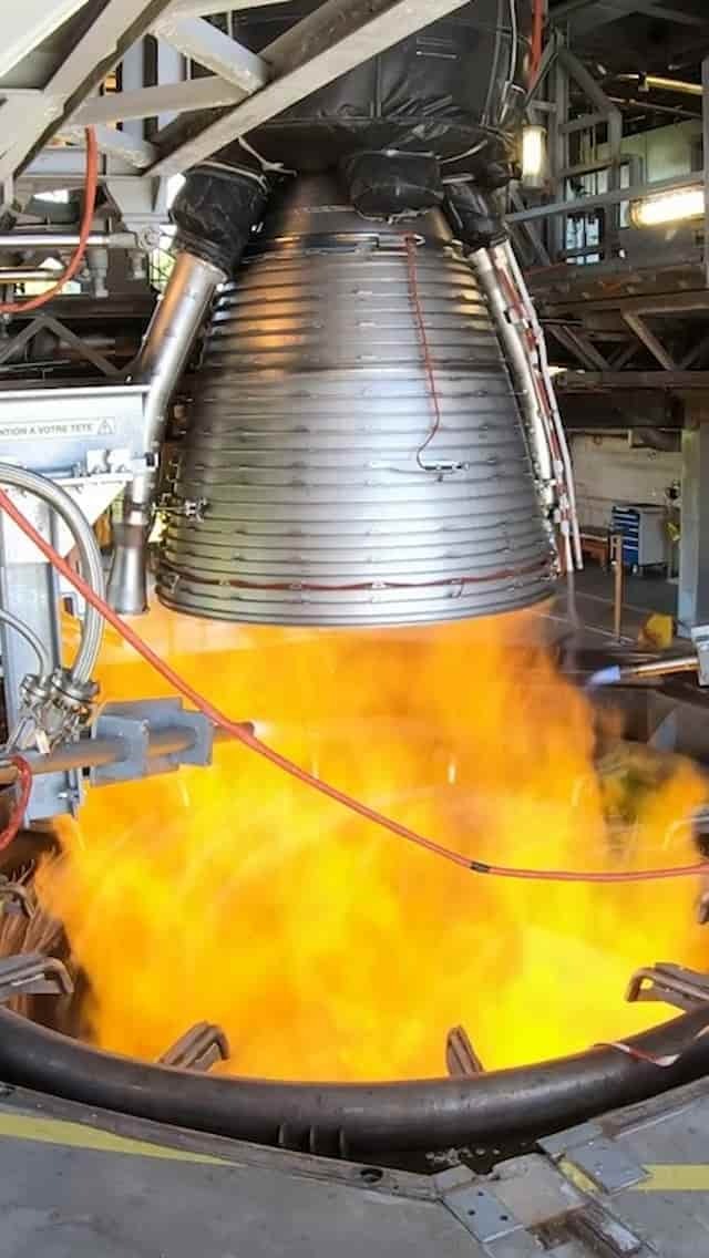 The Ariane 6 Vulcain 2.1 engine during hot-fire tests at the Vernon site ArianeGroup