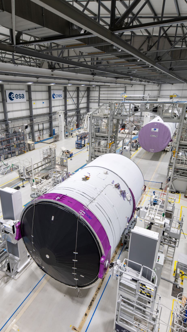 The two stages are currently in the central core final assembly line in the Launcher Assembly Building at the ELA4 launch complex.